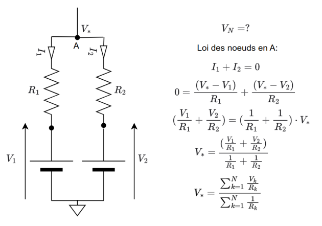Le théorème de Millman est utile lorsqu'il s'agit de calculer la tension au centre d'une étoile formée de plusieurs brins.