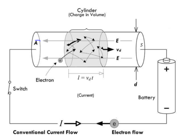 Considérons la charge contenue dans le volume \(\Delta V = S\cdot l = S\cdot v_d\cdot t\).\( \newline\)
