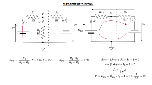 On débranche la «charge » et on calcule le tension obtenue en sortie que l'on nomme \(E_{TH}\).