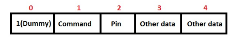 1 - dWriteCmd ([2]) + paramètres [pin, value, unused]