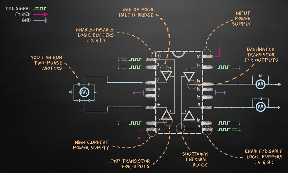 2. inverser le sens de rotation d'un moteur en jouant sur les valeurs MOTEUR1_IN1 et MOTEUR2_IN2;